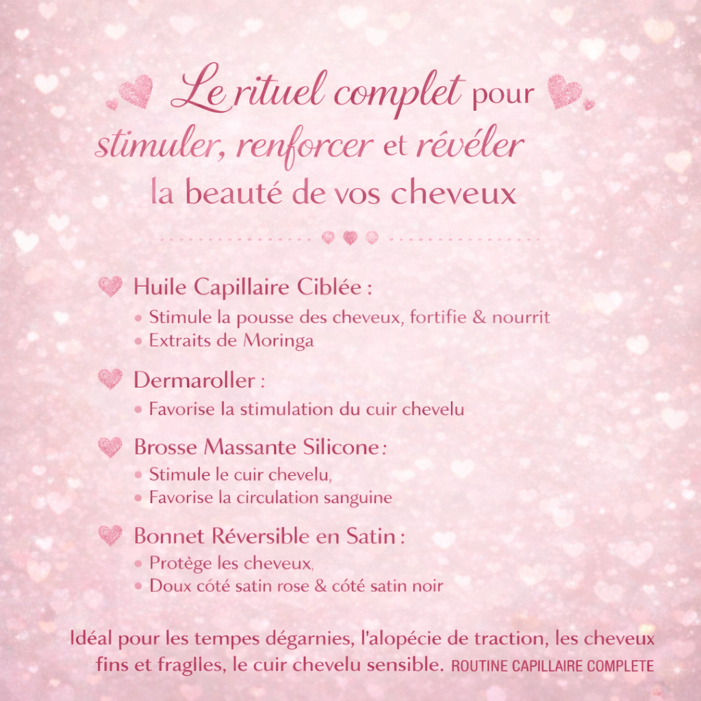 💝 Acheter le coffret"Je ne regrette pas mon achat. Mes cheveux repoussent et sont plus forts qu’avant, je suis ravie du résultat."